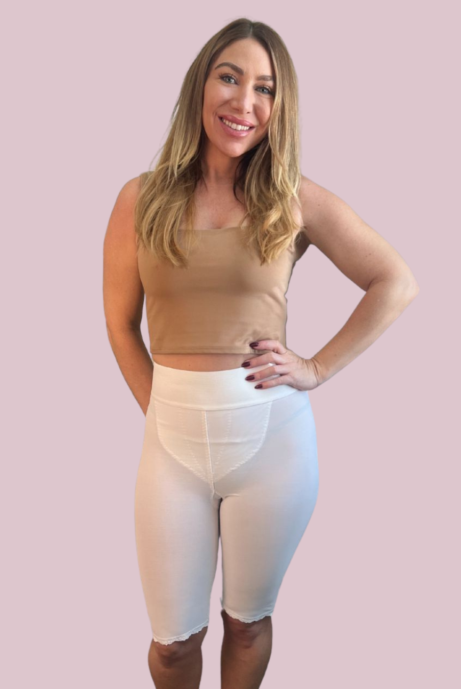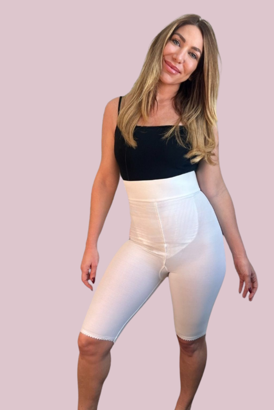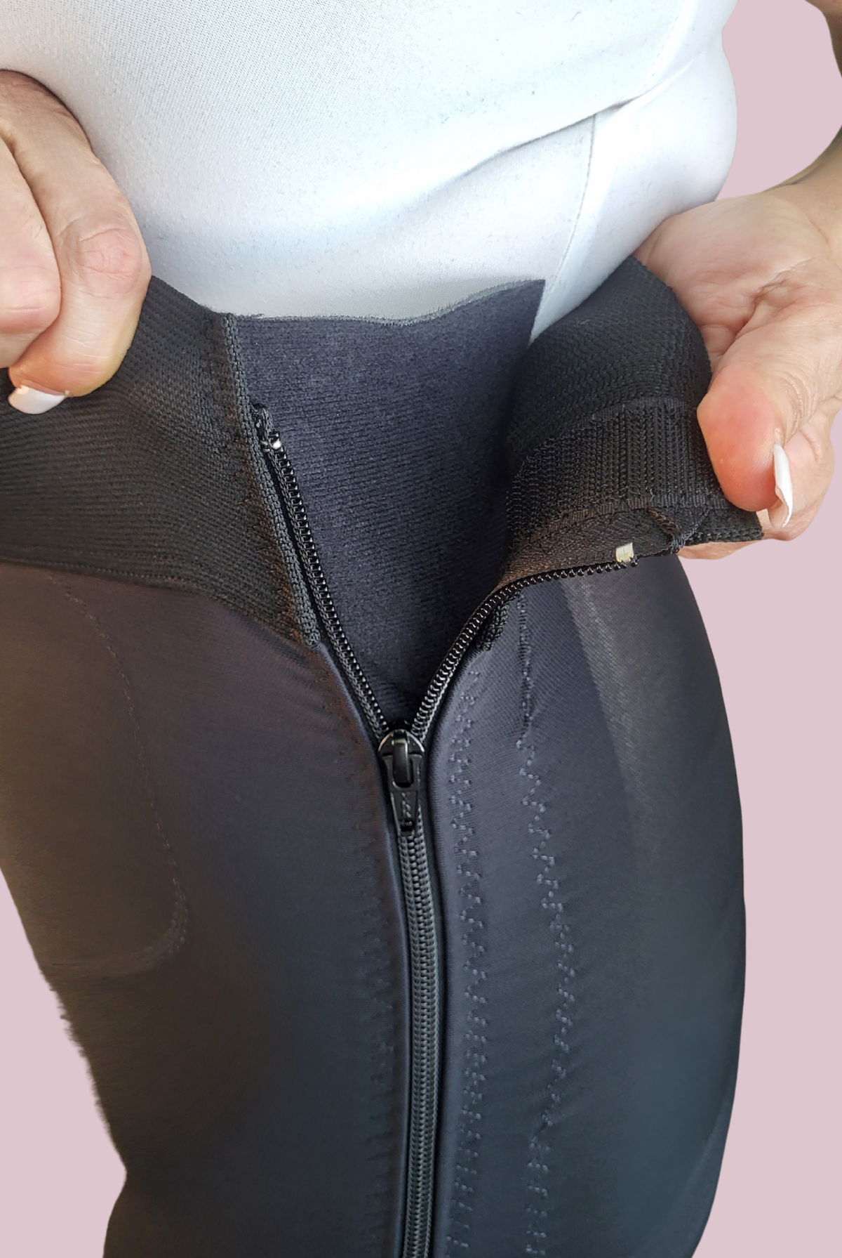 Frank Stubbs compression girdles for knee and thigh liposuction are crafted to deliver precise support and comfort throughout your recovery. They help shape and contour the treated areas while minimizing swelling and fluid buildup, supporting even healing and improved circulation. Constructed from soft, breathable, latex-free materials and proudly made in the USA, these garments include an adjustable hook-and-eye, or a contact closure and an outside zipper for a secure, personalized fit.