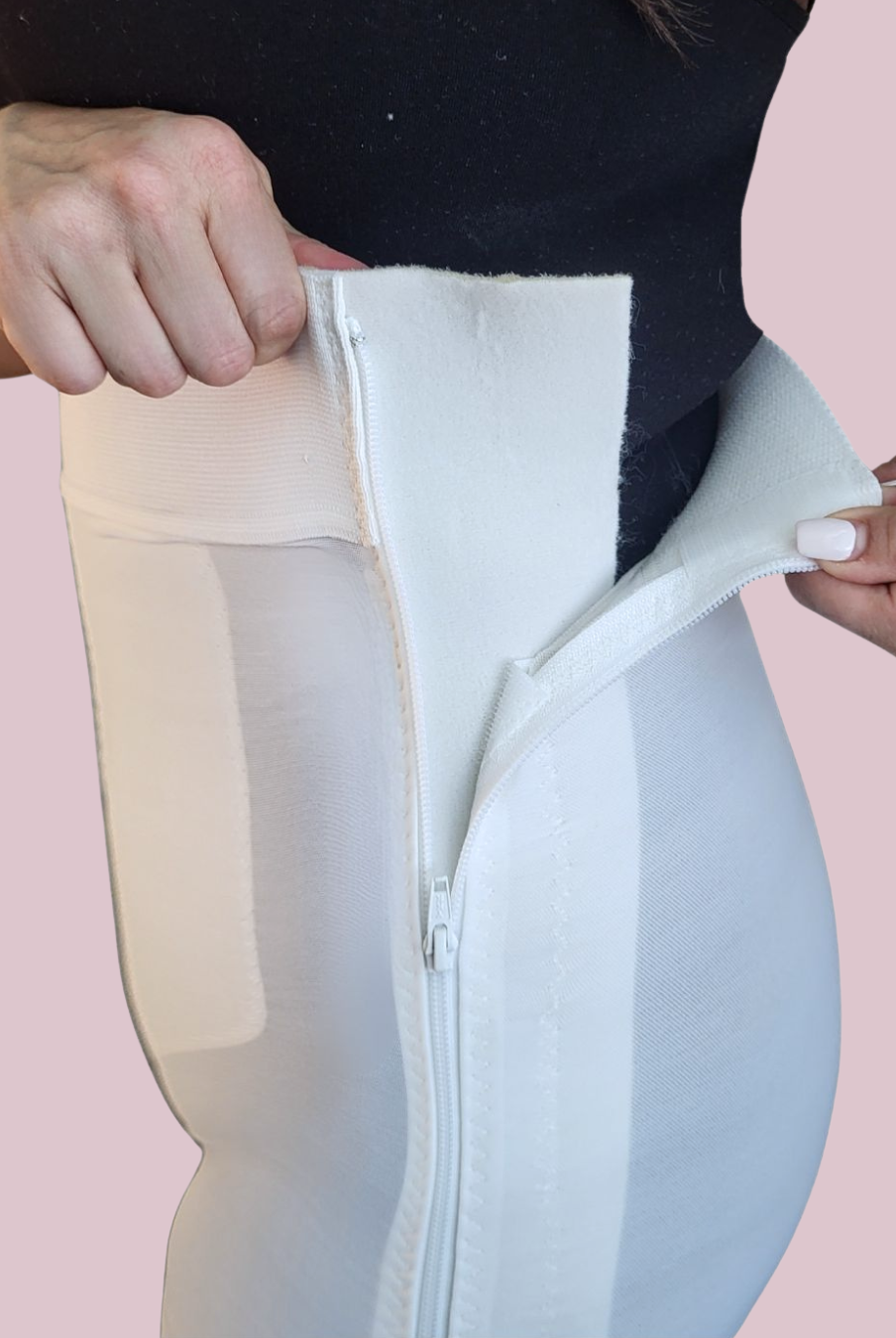 Frank Stubbs compression garments for knee and thigh liposuction provide targeted support to shape and contour treated areas while reducing swelling and promoting circulation. Made from soft, breathable, latex-free materials with a contact closure and outer zipper for a secure, customized fit, these garments are trusted by surgeons and patients for a safe, confident recovery.
