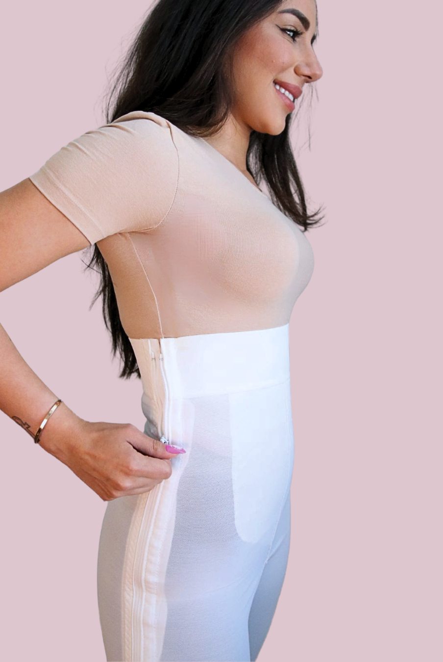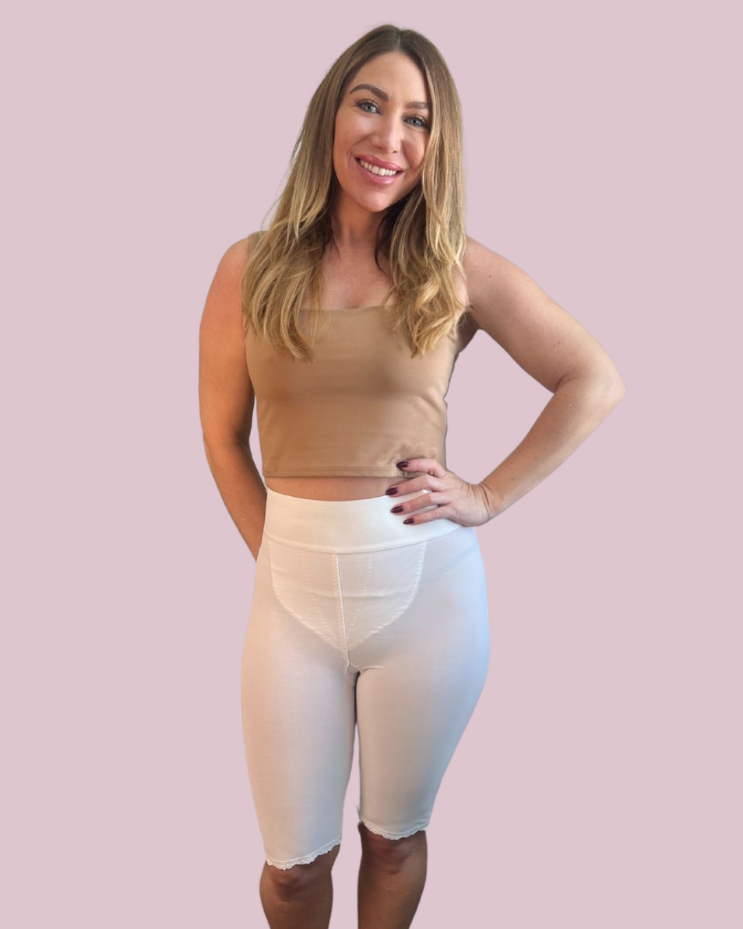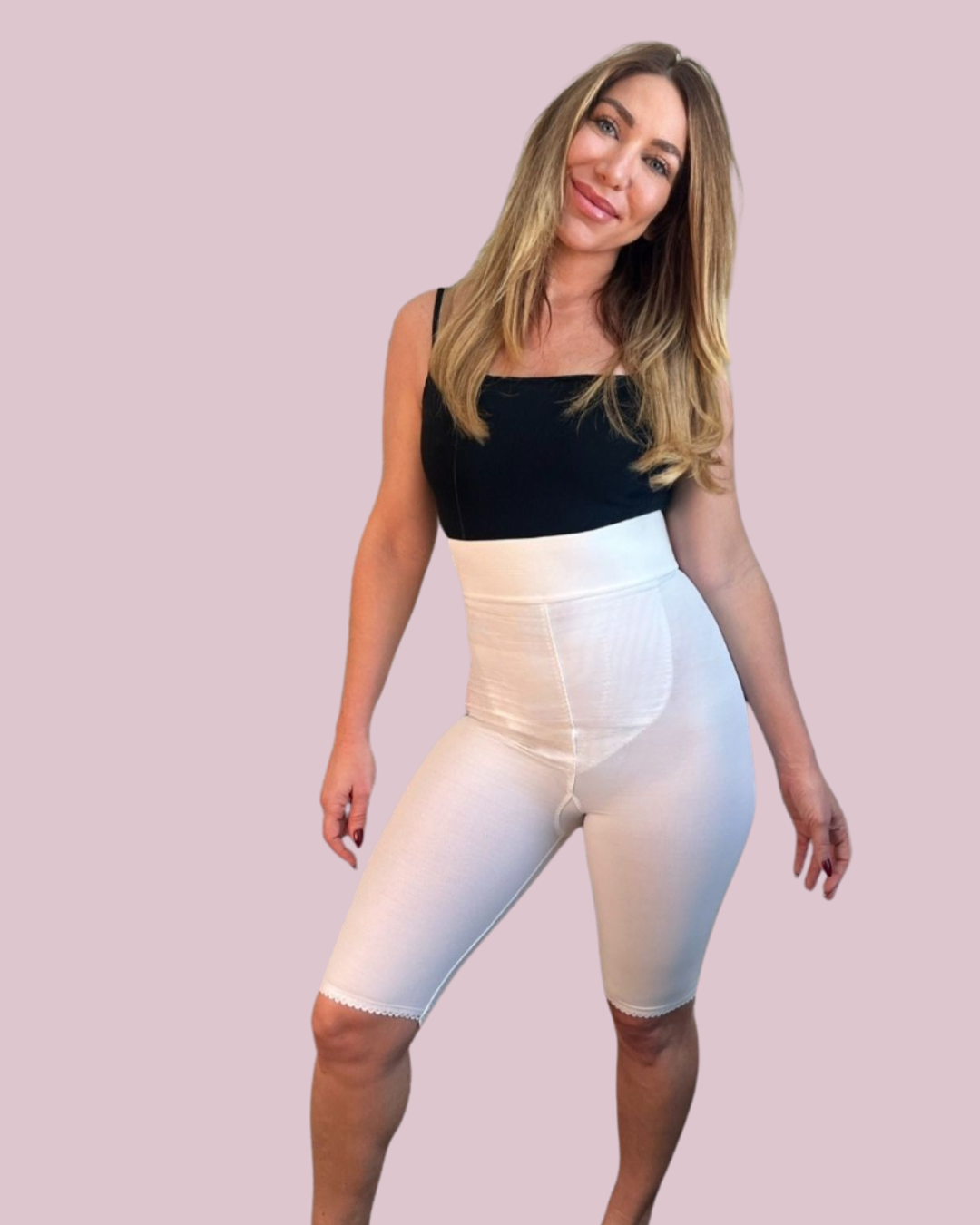 Our compression garments for knee and thigh liposuction are designed to provide targeted support, reduce swelling, and enhance comfort during recovery. They help smooth and contour the treated areas, ensuring even healing while promoting circulation and reducing fluid retention.