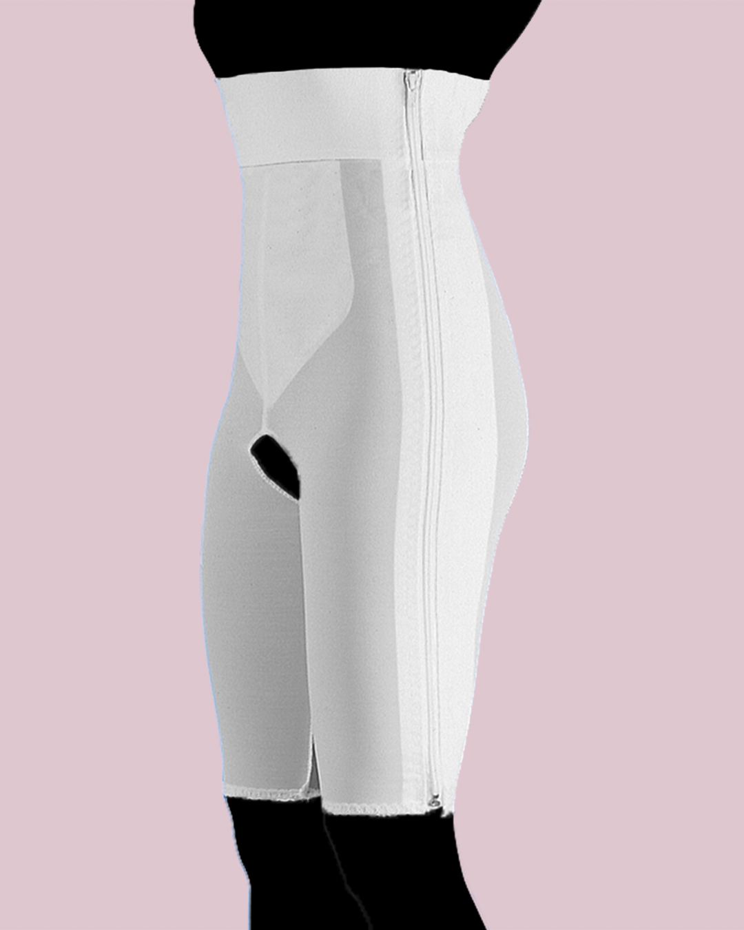 High Waist Compression Girdle Above Knee - Hook and Eye with Zipper, White (#2022)